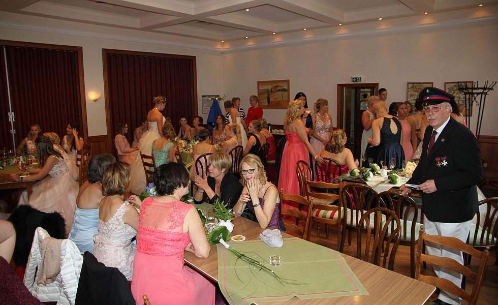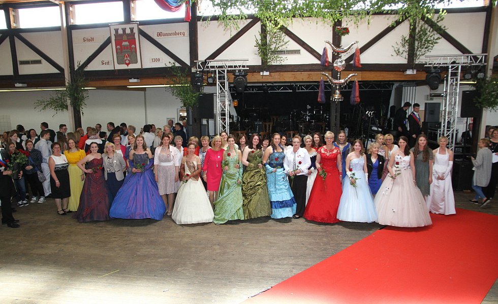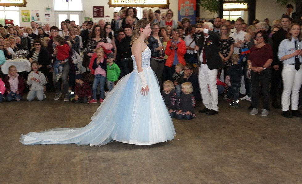 Die Spannung stieg schließlich, als der Rote Teppich ausgerollt wurde. Eine Modenschau, wie sie Bad Wünnenberg noch nie erlebt hatte, nahm ihren Anfang. 19 ehemalige Königinnen des Bad Wünnenberger Schützenverein hatte ihre Regentinnenkleider aus dem Schrank geholt und zeigten sie den beeindruckten Besuchern. Manche der ehemaligen Königinnen schickte eine Vertreterin. Und so traten Tochter, Schwiegertochter, Freundin, Patenkind oder Enkelin als Model in Aktion. Organisiert hatten diese Modenschau der Generationen Bianca Voits und Steffi Wecker.