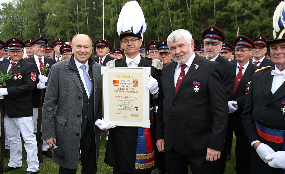 Bereits am Samstag hatten die Jubiläumsfestlichkeiten in Bad Wünnenberg mit einem Gottesdienst am Ehrenmal und anschließendem Zapfenstreich begonnen. Am Nachmittag gab es ein buntes Unterhaltungsprogramm in der voll besetzten Schützenhalle.
