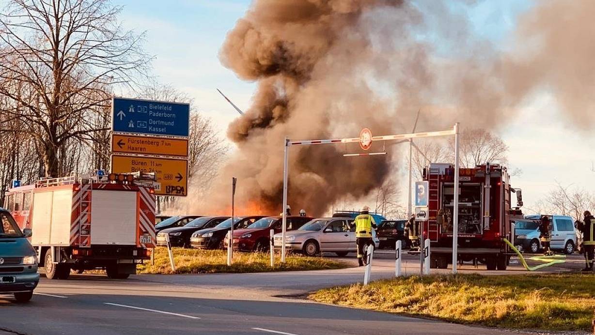 Mehrere Autos brennen auf Pendlerparkplatz in Bad Wünnenberg