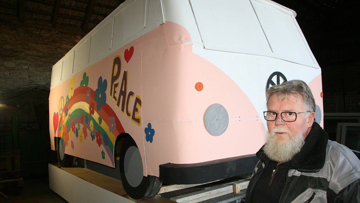 Bad Wünnenberg-Fürstenberg. Ganz fertig ist der VW T 1 aus Holz noch nicht, doch bis zum Beginn des Rosenmontagszuges des Fürstenberger Karnevalsclubs (FCC) sind ja auch noch ein paar Tage Zeit. Mit ihrem bunten Flower-Power-Gefährt will die Gruppe Hexentreff die Blicke auf sich ziehen und gleichzeitig an 50 Jahre Woodstock-Festival im vergangenen Jahr erinnern.