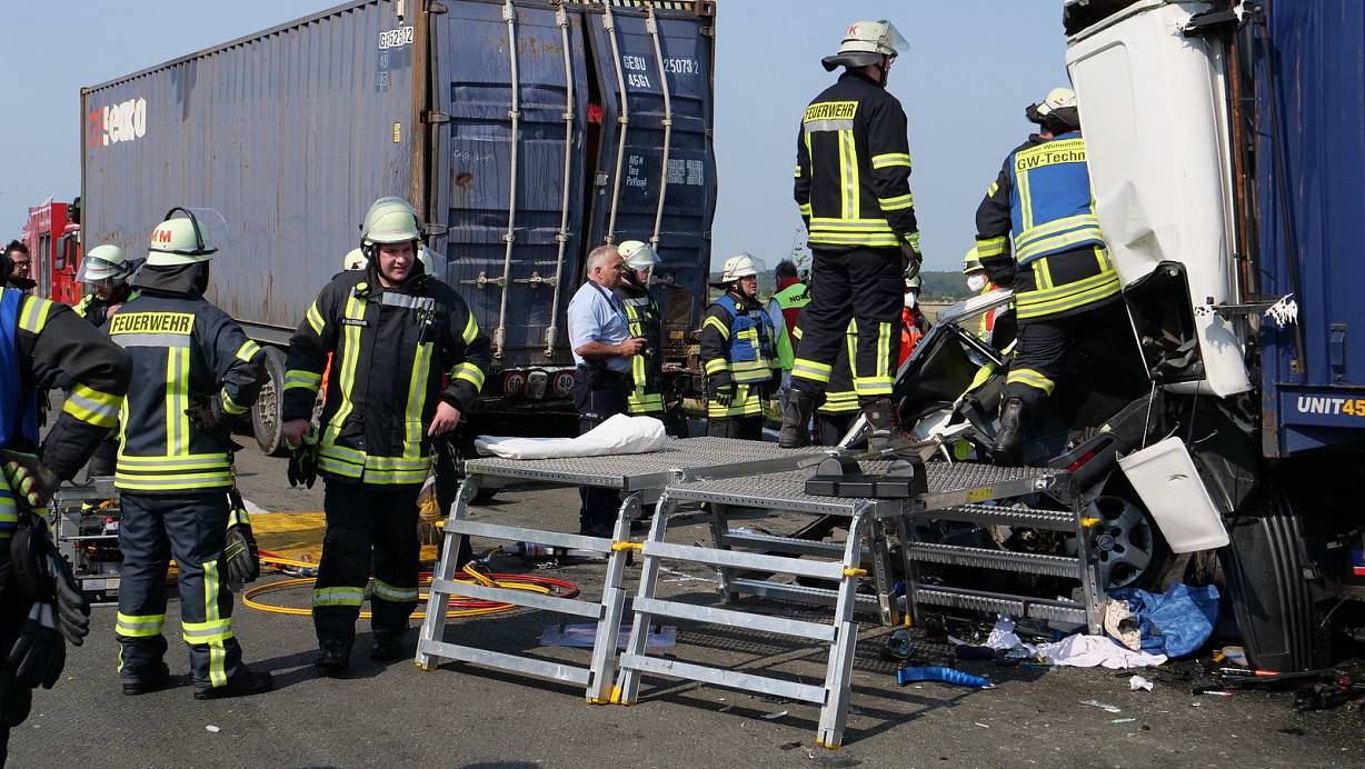 Am Freitag war ein 33-jähriger Lastwagenfahrer aus ungeklärter Ursache nahezu ungebremst auf einen Kleinbus an einem Stauende aufgefahren und hatte diesen mit großer Wucht unter einen weiteren Lastwagen geschoben.