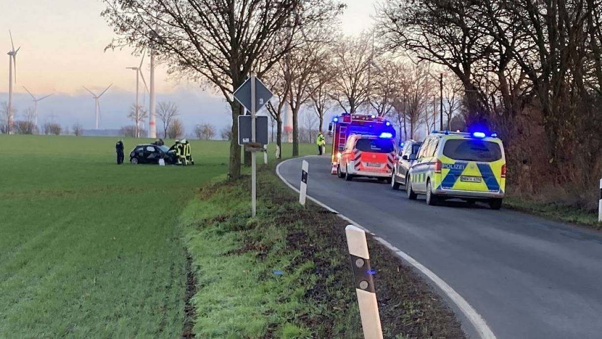 Nur kurze Zeit später bemerkte ein Feuerwehrmann gegen 15.30 Uhr einen weiteren Verkehrsunfall auf der Dalheimer Straße bei Helmern. Hier war ein mit zwei Personen besetztes Auto von der Fahrbahn abgekommen, prallte vor einen Baum und blieb auf einem Acker liegen. Der 25-jährige Fahrer und seine 23-jährige Beifahrerin wurden dabei verletzt. Sie konnten das Fahrzeug eigenständig verlassen. Die Verletzten wurden notärztlich erstversorgt und ins Krankenhaus gebracht, konnten es aber nach Angaben der Paderborner Kreispolizei nach der Behandlung wieder verlassen. Am Fahrzeug entstand Totalschaden.