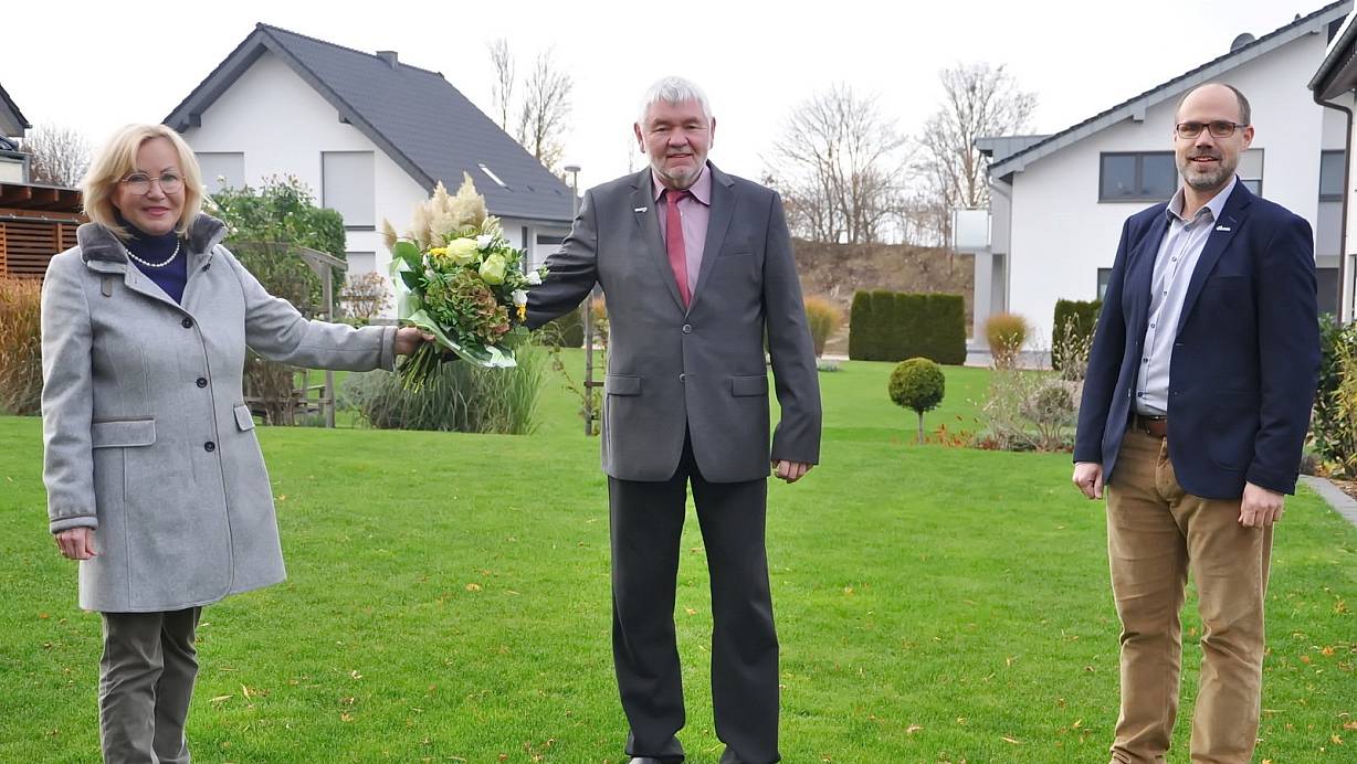 Klemens Otte (M.), Ortsvorsteher der Kernstadt Bad Wünnenberg, wurde von Bürgermeister Christian Carl und seiner Nachfolgerin Maria Junge verabschiedet. | © Brigitta Wieskotten