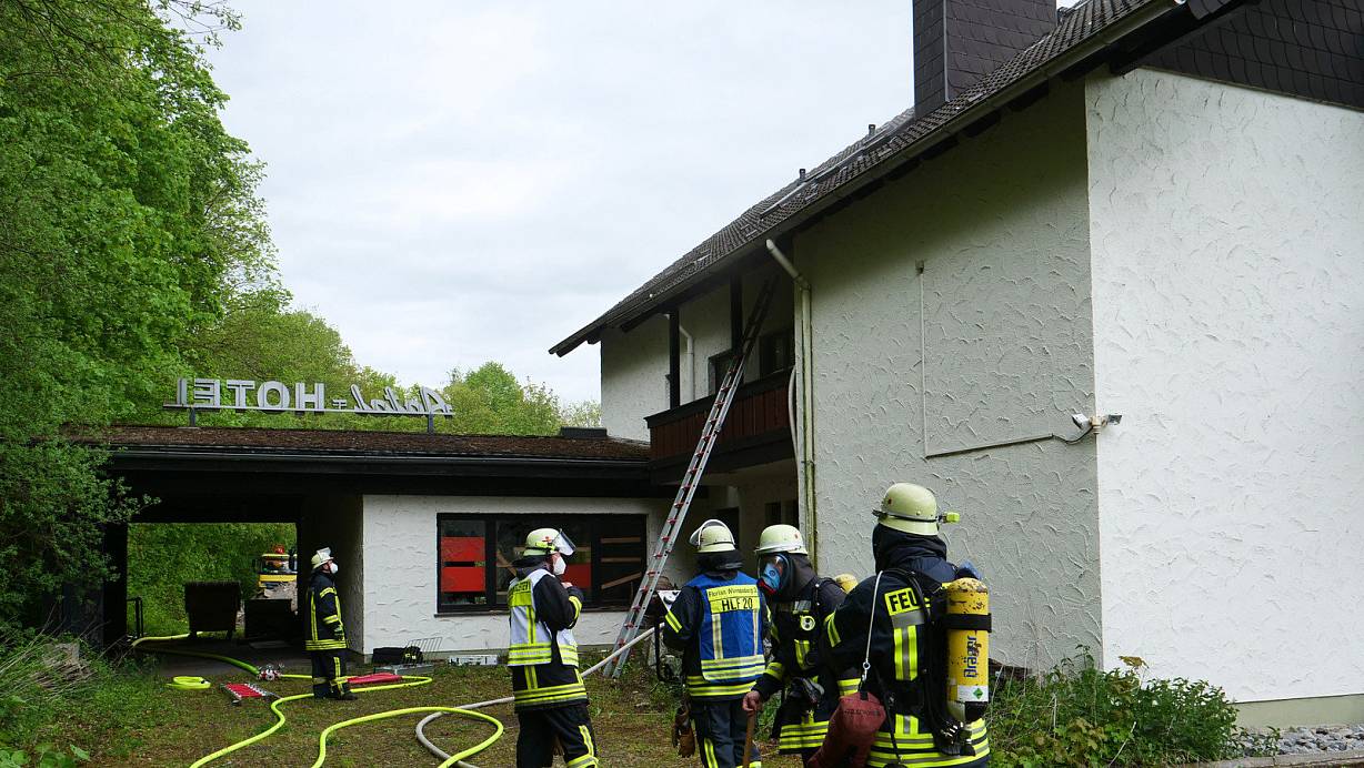 Rund 60 Feuerwehrleute bekämpften am Pfingstmontag einen Brand im Obergeschoss des Empfangsgebäudes im früheren Hotel im Aatal. | © Ralph Meyer