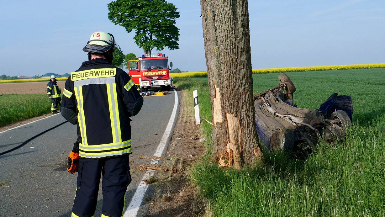 Schwerer Verkehrsunfall auf der Eilerner Straße nahe des Ortsteils Eilern. Ein Opel Corsa prallt auf der Fahrt Richtung Fürstenberg gegen einen Baum.