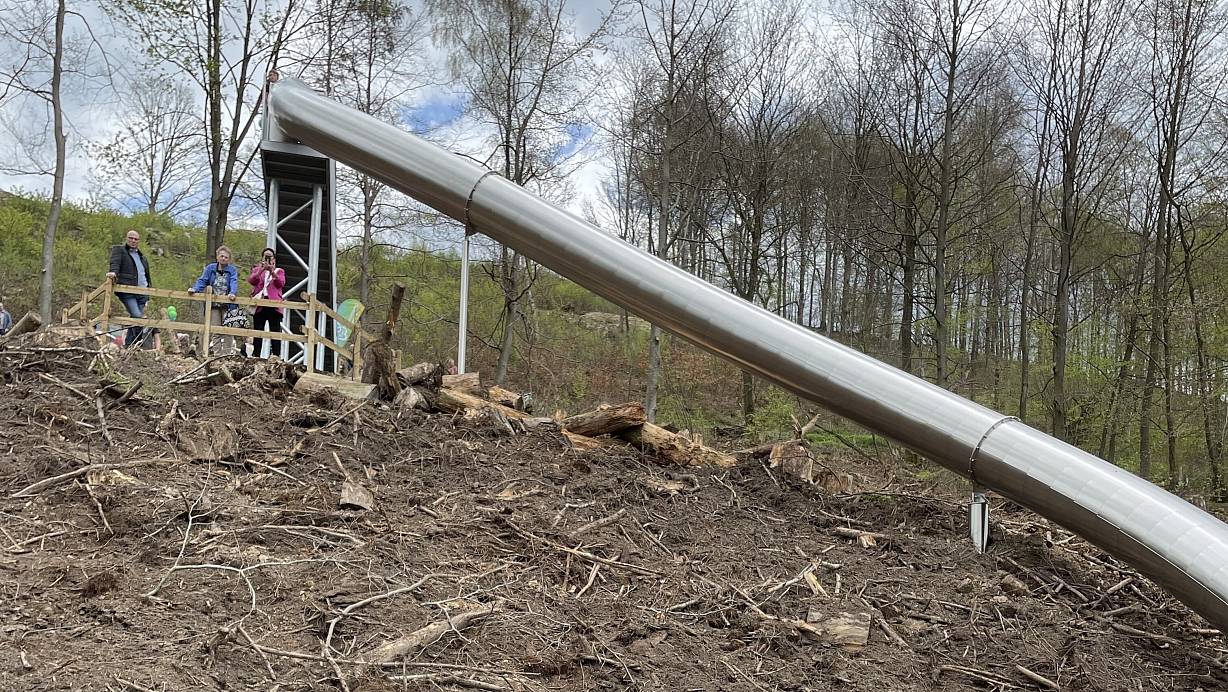 Die neue Hangrutsche windet sich 35 Meter lang ins Tal hinab. | © Stadt Bad Wünnenberg