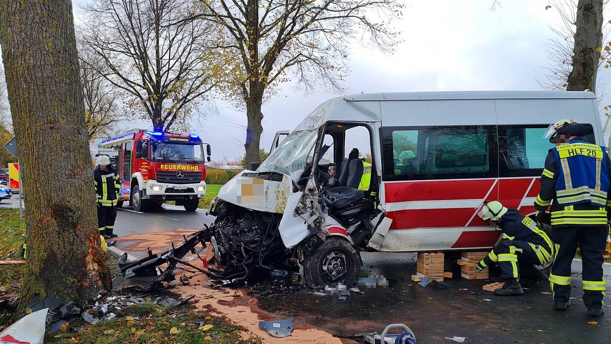 Kleintransporter prallt bei Bad Wünnenberg frontal gegen Baum