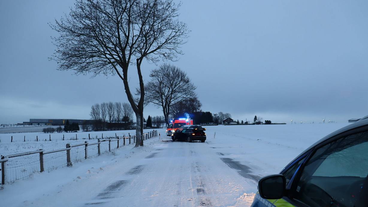 Auf der Bürener Straße zwischen Büren-Steinhausen und Geseke-Eringerfeld verunglückte um 9 Uhr eine 26-jährige Nissan-Micra-Fahrerin. Sie geriet auf Schneeverwehungen und verlor sie die Kontrolle über ihren Pkw. Der Kleinwagen schleuderte herum und kam nach links von der Straße ab. Mit dem Heck voraus kollidierte das Auto mit einem Telefonmasten und dann frontal mit einem Baum. Die Fahrerin blieb unverletzt, an ihrem Auto entstand jedoch Totalschaden.
