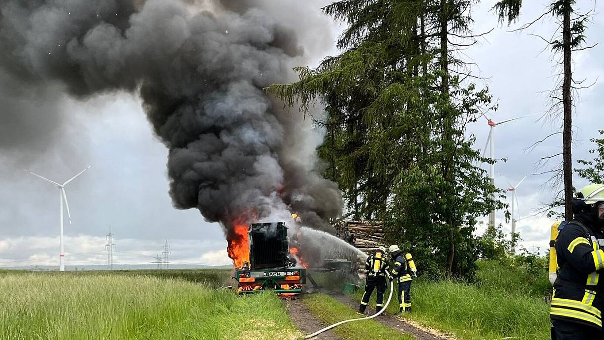 Bad Wünnenberg-Elisenhof. Eine schwarze Rauchwolke wies den Einsatzkräften der Bad Wünnenberger Feuerwehr am Mittwoch den Weg. In einem Waldstück am Rand des Ortsteils Elisenhof stand ein selbstfahrender Holzhacker in Vollbrand, berichtet die Feuerwehr.