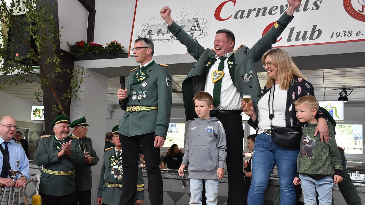 Das neue Schützenkönigspaar Christian und Christina Hesse freut sich mit seinen Kindern. | © Brigitta Wieskotten