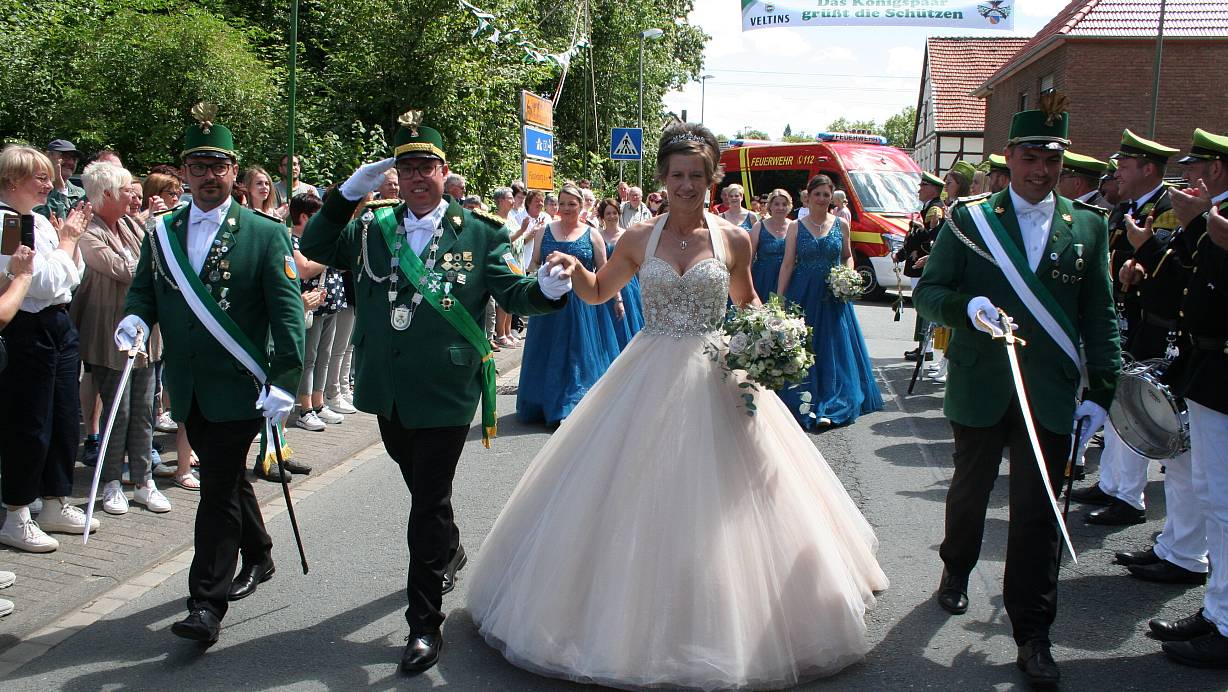 In Haaren wird das Königspaar Tobias und Kathrin Scharfen von Schützen und Gästen gefeiert. | © Johannes Büttner