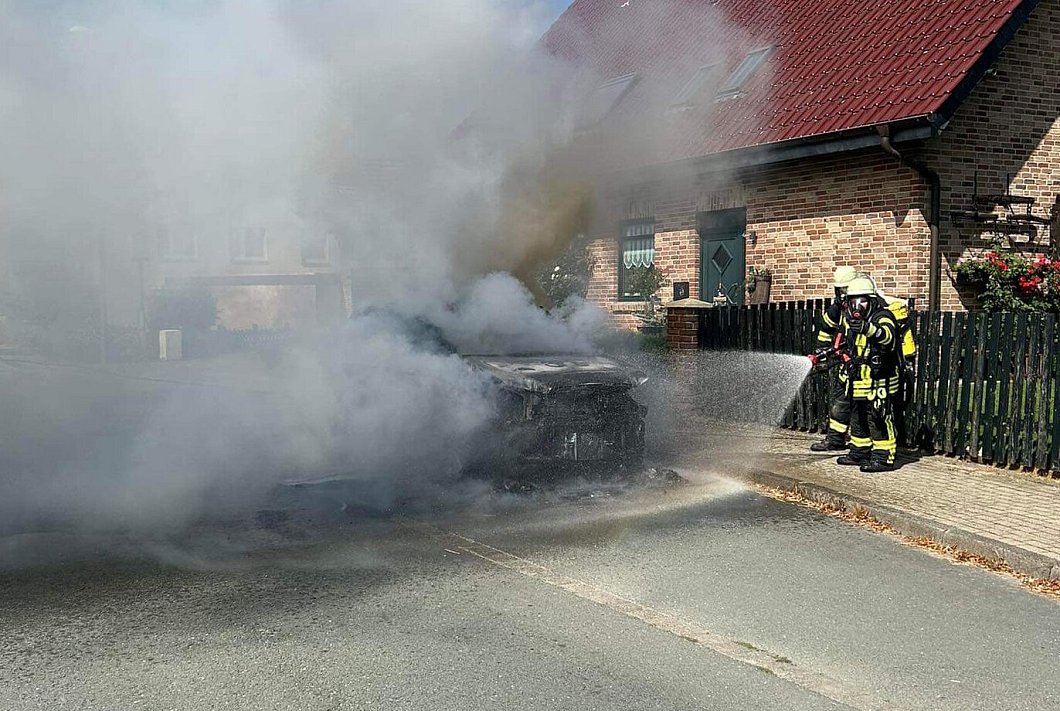 Bei Eintreffen der ersten Feuerwehrleute stand der Mitsubishi bereits im Motorraum in Vollbrand, heißt es in einer Mitteilung der Feuerwehr.