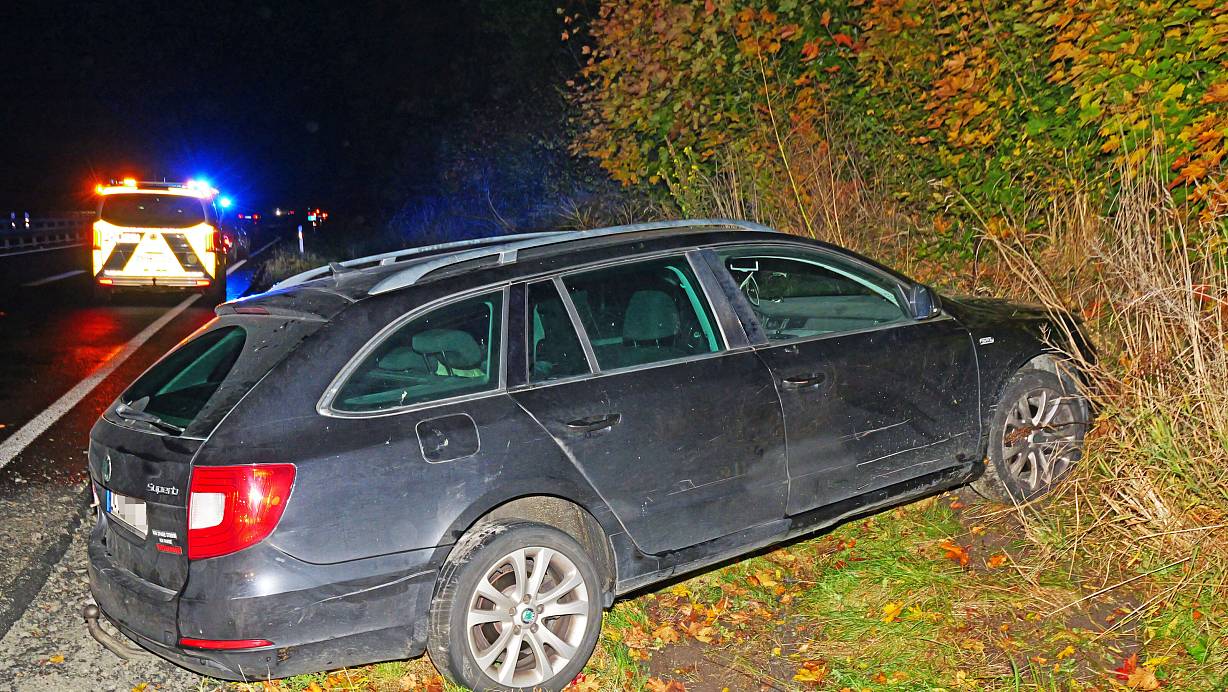 Nahe des A33-Autobahnkreuzes Bad Wünnenberg-Haaren landete dieser Skoda Octavia Superb im Straßengraben. | © Ralph Meyer