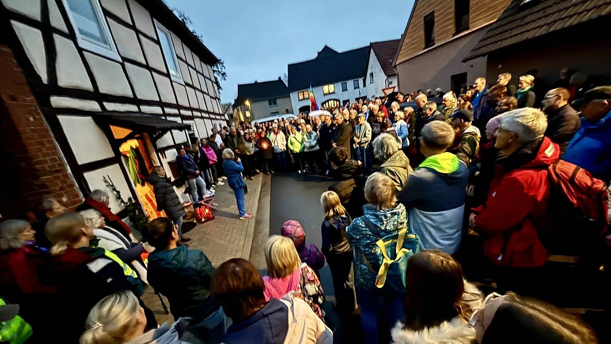 Die Zerstörung eines Fensters im historischen Gebäude in Haaren entsetzt viele Menschen des Paderborner Landes. Zu einer Mahnwache am Tatort kommen etwa 200.