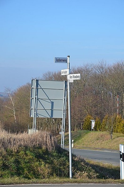 Gängige Navigationsgeräte zeigen den Straßennamen an, doch er war bislang nicht durch Schilder ausgewiesen. Aufgrund des Nebensinns von "Judenweg" konnte so schnell der Eindruck entstehen, es gebe einen Grund, den Straßennamen zu verbergen. Schließlich stand an der Kreuzung bereits ein Mast, der "Am Kleeberg" auswies.