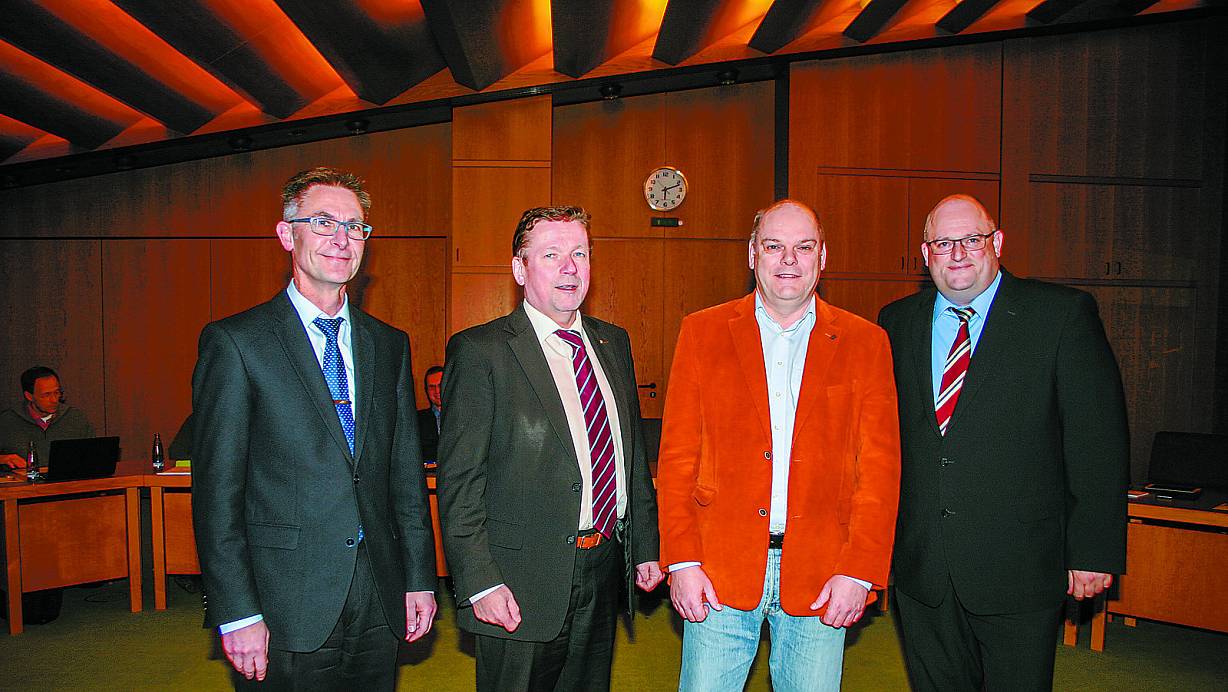 Borchen. Manfred Melcher (2.v.r.) ist vom Rat der Gemeinde Borchen einstimmig zum neuen Ortsvorsteher von Kirchborchen gewählt worden. Der Mann vom Hessenberg, der sich in vielen weiteren Ehrenämtern längst bewährt hat, löst Jörg Meschede (r.) ab. Der hatte sein Amt nach einem Jahr aufgegeben, weil er am 1. Oktober in der Stadt Büren das Amt des Kämmerers übernommen hat. Meschede gibt auch sein Ratsmandat zurück. Den Platz in den Reihen der Christdemokraten übernimmt nun Hansjörg Frewer (l.). Borchens Bürgermeister Reiner Allerdissen (2.v.l.) dankte Meschede für die geleistete Arbeit und bezeichnete Melcher als "Idealbesetzung".