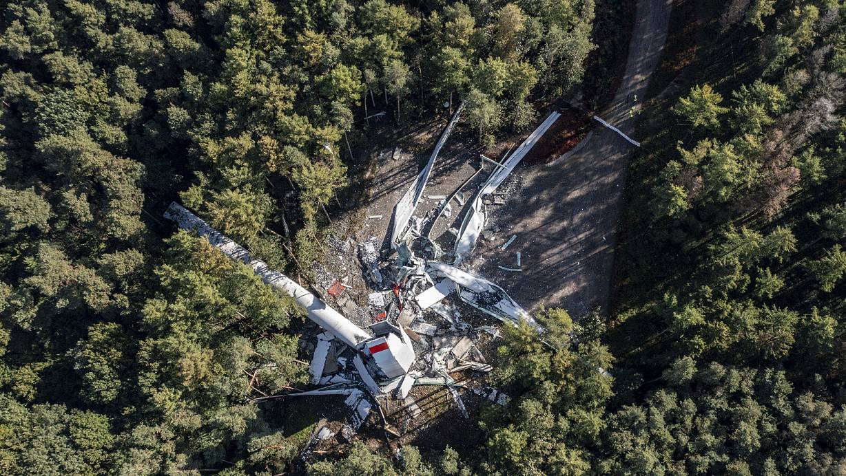 Nach dem Zusammenbruch liegen die Reste der Windenergieanlage in einem Wald in Haltern am See. Das Windrad war erst ein halbes Jahr alt. | © picture alliance/dpa/Christoph Reichwein