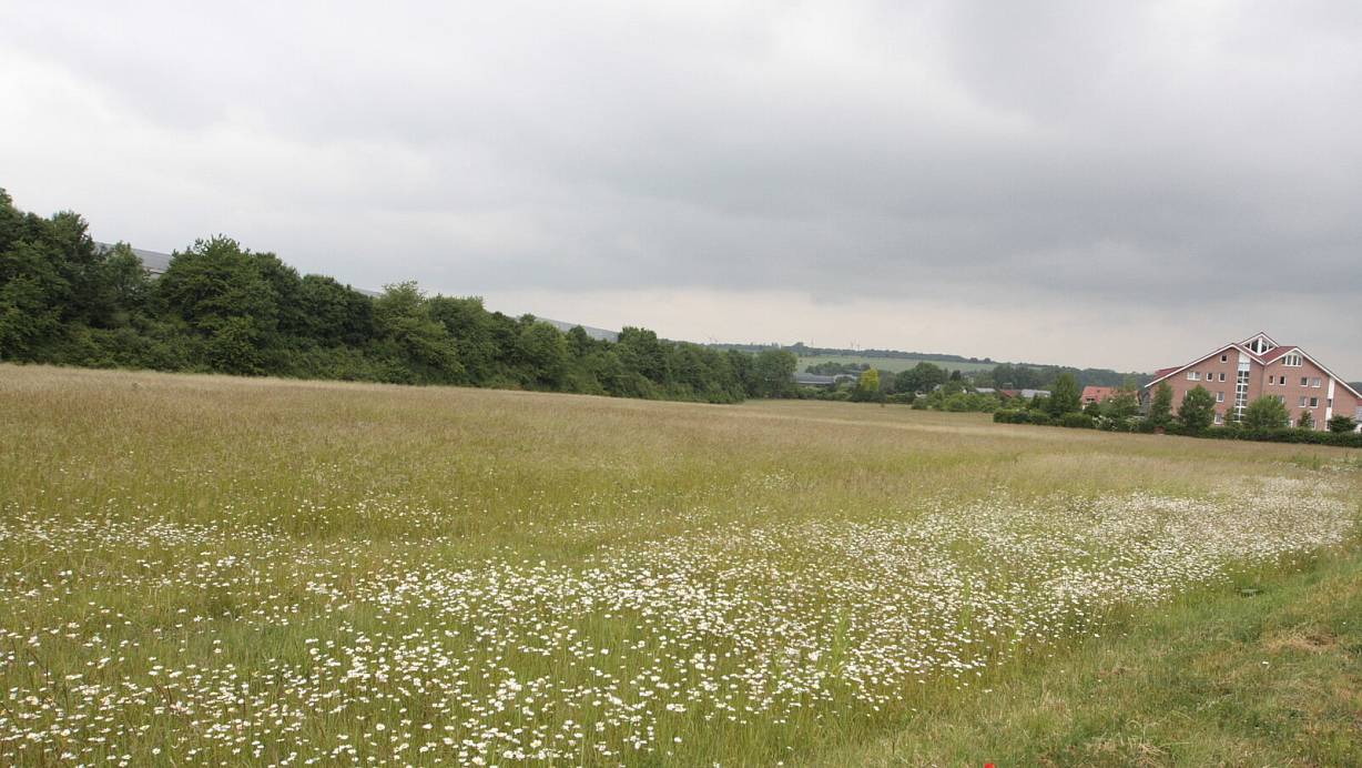 Auf dieser Wiese am Almehang könnten Photovoltaik-Anlagen gebaut werden. Links hinter den Büschen verläuft die A33. | © Uwe Müller