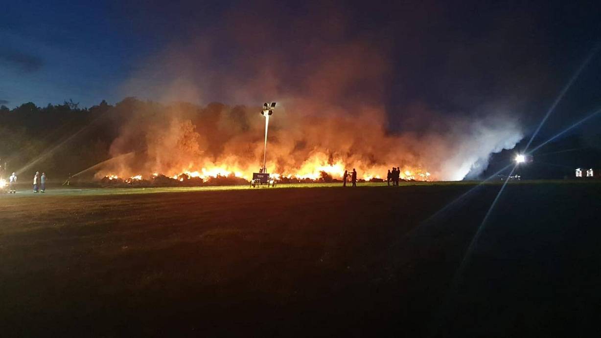Borchen-Schloß Hamborn (msc). Am Sonntagnachmittag ist ein aus etwa 1.000 Rundballen bestehendes Strohlager bei Schloß Hamborn aus bislang nicht geklärter Ursache in Brand geraten. Die Löscharbeiten der Feuerwehr dauerten auch am Montagmorgen noch an. Die Auswirkungen des Feuers sind sogar in Teilen Paderborns wahrnehmbar.