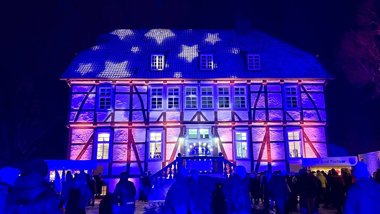 Passend zum ersten Adventswochenende rieseln ein paar Schneeflocken vom Himmel auf Borchen herab. Die Besucherinnen und Besucher genießen das Ambiente.