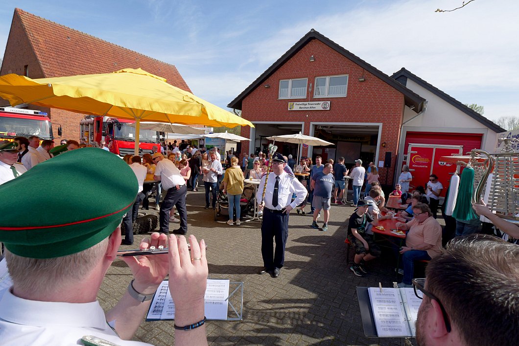 Borchen-Alfen. Damit hatten die 36 aktiven Feuerwehrleute des Borchener Löschzuges nicht gerechnet. Der erste Sommertag des Jahres lockte weit mehr Besucher zur Geburtstagparty am Feuerwehrgerätehaushaus, als die Planer kalkuliert hatten. Bei Temperaturen um 25 Grad, leckeren Speisen und Getränken und Livemusik vom Musikverein Alfen und dem Spielmannszug Alfen wurde es zuweilen richtig kuschelig.