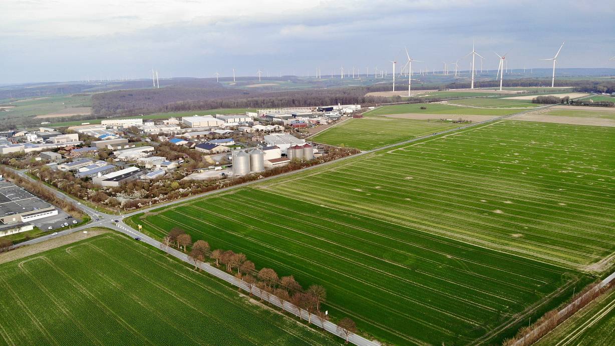 Die große rechteckige Ackerfläche zwischen Judenweg (im Vordergrund) und der kreuzenden Straße Am Kleeberg ist im Regionalplan als Gewerbezone ausgewiesen. Direkt nebenan ist das Borchener Gewerbegebiet zu sehen. Dahinter verläuft die A33. | © Jens Reddeker