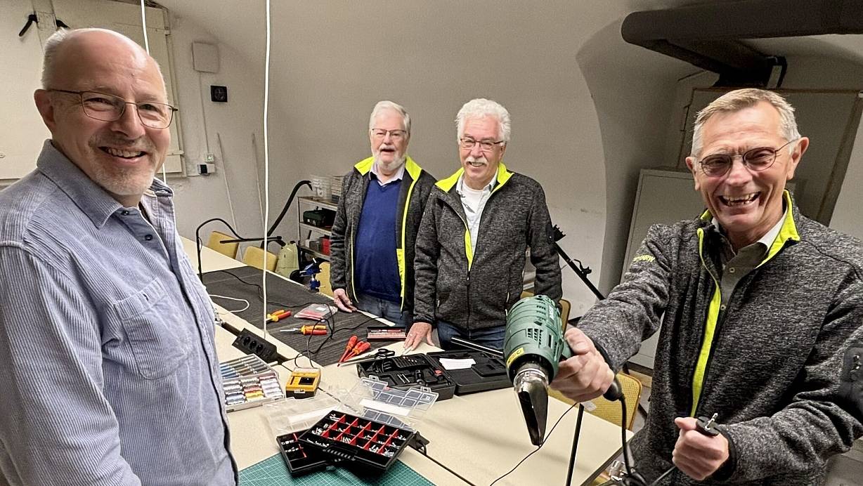 Zur Reparier-Bar gehören (v. l.) Ansgar Bahne, Harald Kuhnigk, Werner Suermann und Karl-Heinz Baumhögger. Reparieren werden auch Konrad Lüke und Axel Herrmann. | © Jens Reddeker
