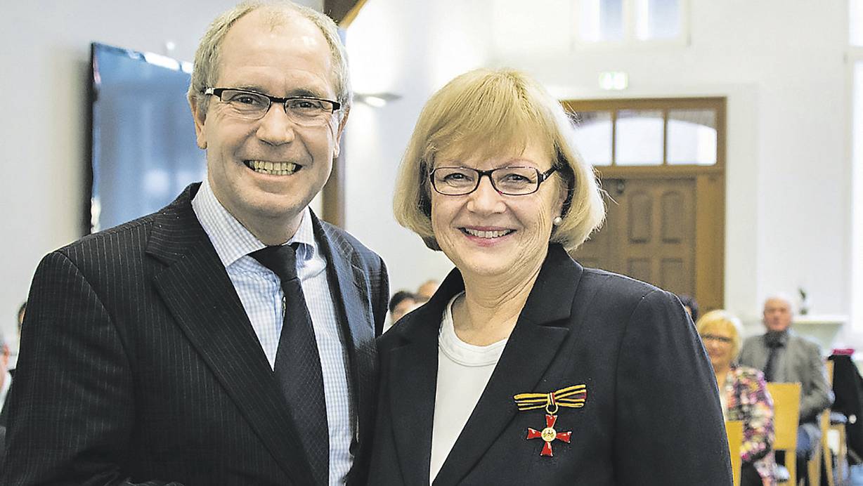 Büren. Der Bundespräsident hat Jutta Schmidt aus Büren für ihr jahrzehntelanges Engagement im politischen Bereich das Verdienstkreuz am Bande der Bundesrepublik Deutschland verliehen. Landrat Manfred Müller überreichte ihr gestern im Rahmen einer Feierstunde im Bürener Bürgersaal die Ordensinsignien.