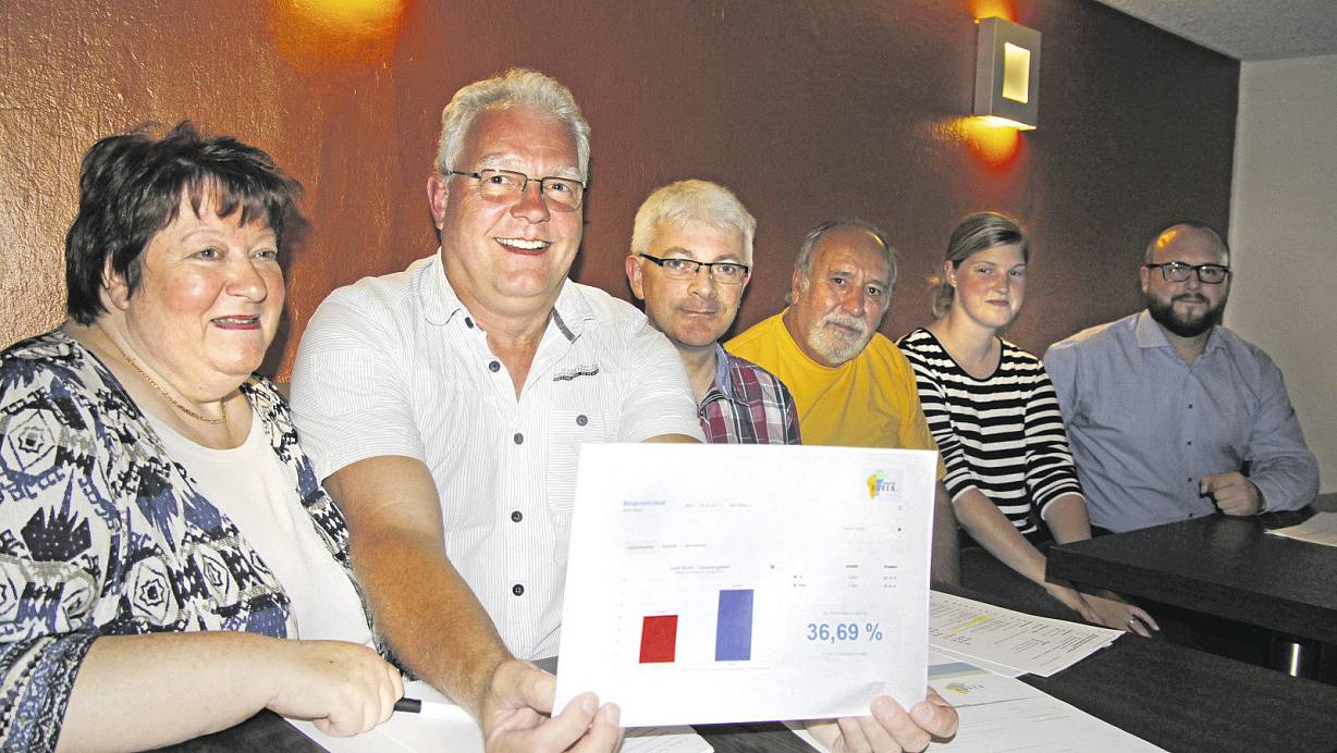 Deutliches Votum: Die Wählergemeinschaft Bürger für Büren (BfB) knüpft an den Ratsbürgerentscheid gegen ein Einkaufszentrum in der Innenstadt an, für das lediglich 36,69 Prozent votierten - (v. l.) Schatzmeisterin Liane Eckert, Vorsitzender Rüdiger Bonke, Schriftführer Volker Litschke, Hans-Georg Eckert, Julia Bonke und Daniel Peitz. | © Karl Finke
