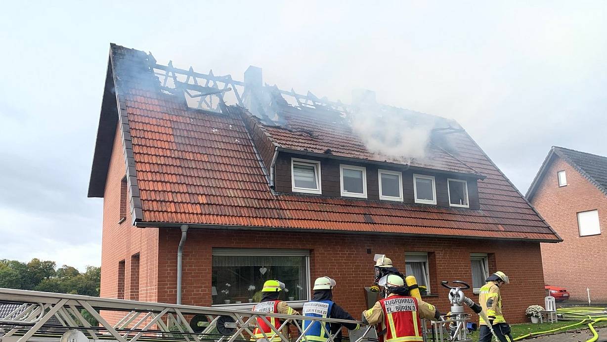 Dachstuhl eines Wohnhauses in Büren brennt aus