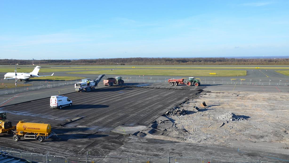 Auf dem Vorfeld des Paderborner Flughafens beherrschen aktuell Baumaschinen anstellen von parkenden Flugzeugen das Bild. | © Paderborn-Lippstadt Airport
