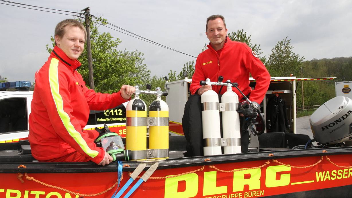 Die DLRG Ortsgruppe Büren hat zehn Einsatztaucher in ihren Reihen. Zu ihnen gehört auch Joseph Wellen (l.). Leiter der Gruppe ist Andreas Schwarz aus Steinhausen. | © Johannes Büttner