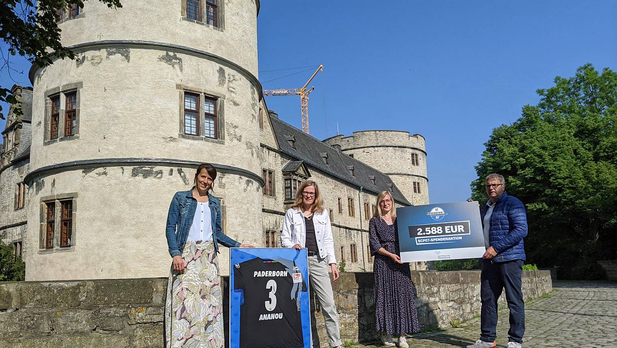 Bei der Versteigerung zahlreicher Artikel aus den SCP-Vielfaltswochen sind insgesamt 2.588 Euro zusammengekommen, die der Verein jetzt an das Kreismuseum Wewelsburg und seinen Förderverein übergeben hat.