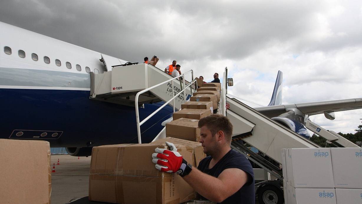 Insgesamt 200 Tonnen an medizinischer Schutzausrüstung werden nach Namibia geliefert. In Ahden wird ein 130 Tonnen schwerer Airbus dafür sechsmal voll beladen.