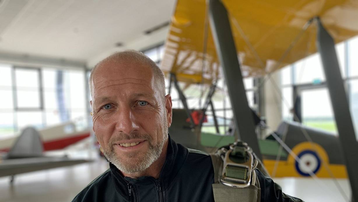 In der Kulisse des Quax-Hangars am Airport Paderborn/Lippstadt fühlt sich Fallschirmspringer Horst Salmen wohl.In der Kulisse des Quax-Hangars am Airport Paderborn/Lippstadt fühlt sich Fallschirmspringer Horst Salmen wohl. | © Jens Reddeker