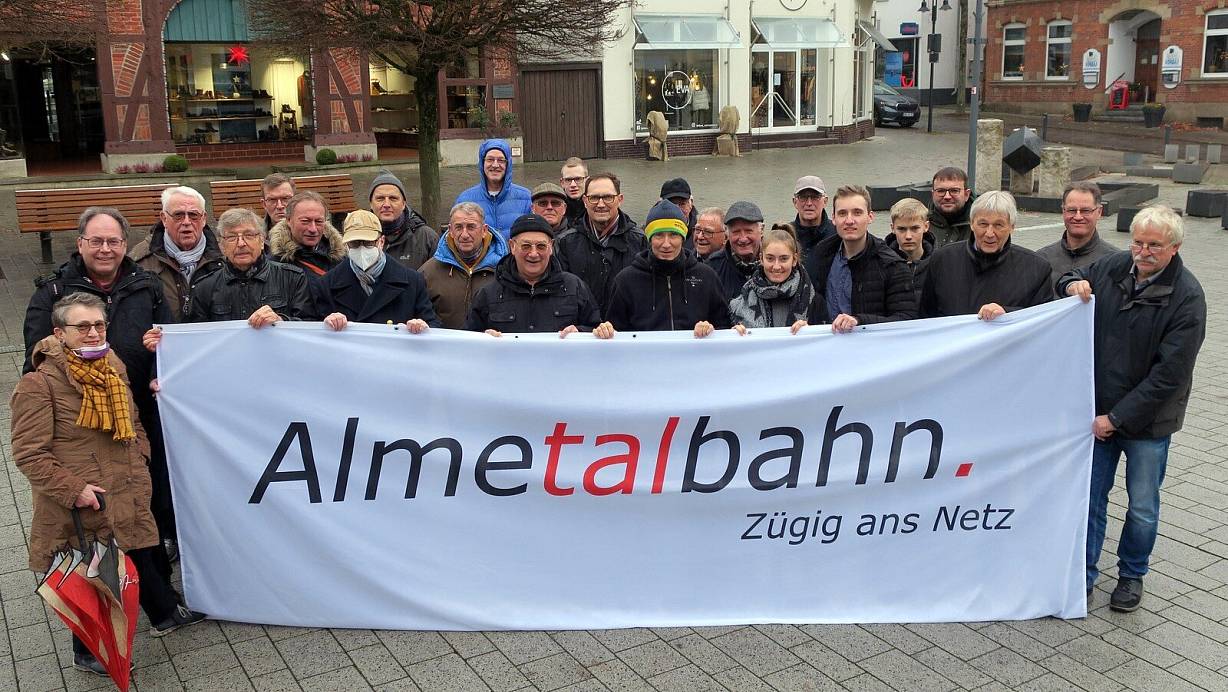 „Die Almetalbahn ist ein Infrastrukturprojekt mit hoher überregionaler Bedeutung", sagt Norbert Ellermannn aus Rheda-Wiedenbrück. Der Historiker ist beruflich oft in Wewelsburg aktiv und nutzt bisher den Bus. Für ihn ist die Reaktivierung und Vernetzung der brachliegenden Almetalbahn ein Lückenschluss im NRW-Bahnnetz. „Wer auf den Liniennetzplan schaut, erkennt eine klaffende Lücke, die zügig geschlossen werden muss", macht Ellermann deutlich. Vor allem im Hinblick auf die ambitionierten Klimaschutzziele der neuen Bundesregierung und den Beschluss der Verkehrsministerkonferenz, bis zum Jahr 2030 die Anzahl der Fahrgäste bundesweit verdoppeln zu wollen. Damit die Almetalbahn ihren Teil einmal dazu beitragen kann, muss die Machbarkeitsstudie am Ende einen Wert über „1" belegen. Damit wäre der volkswirtschaftliche Nutzen nachgewiesen und das Projekt förderfähig. Erst dann könnten die weiteren Planungen Fahrt aufnehmen.