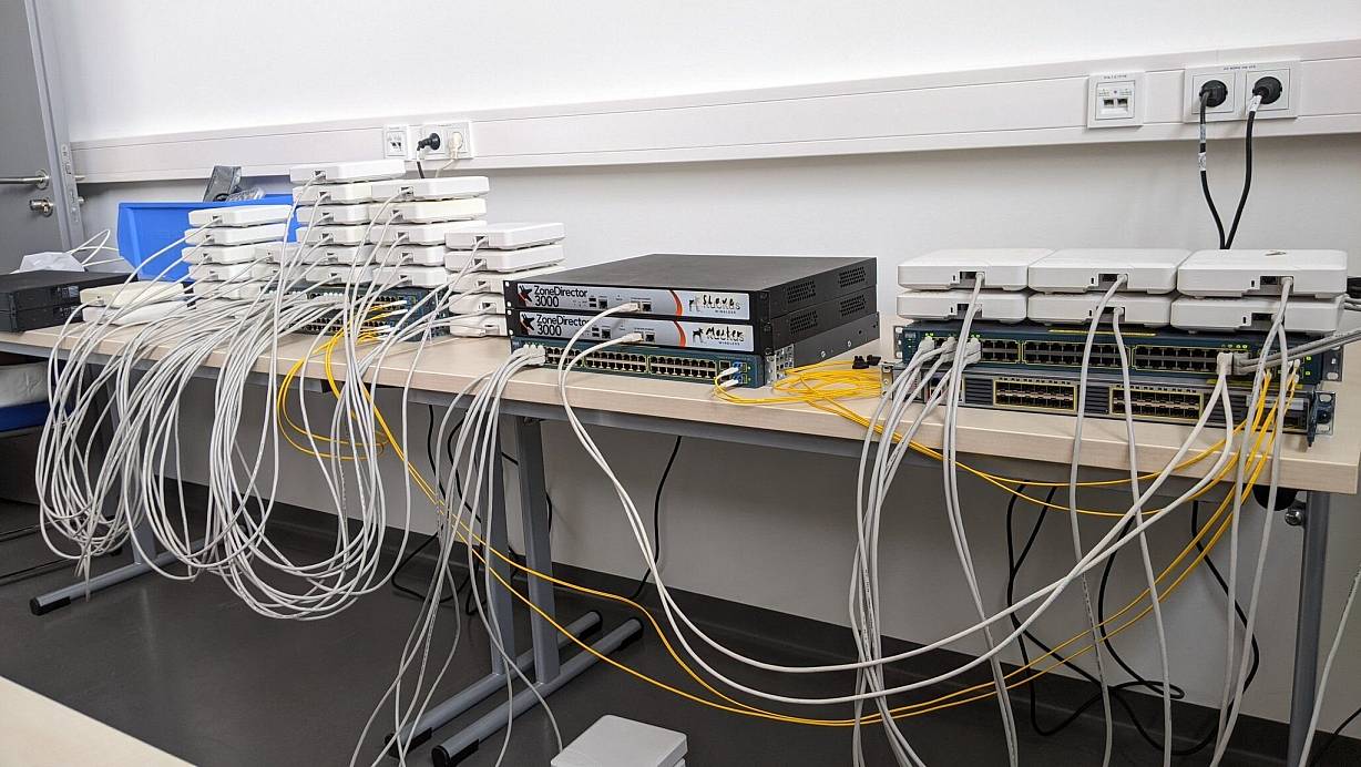 Vorbereitung des WLAN Equipments zur späteren reibungslosen Installation. Zum damaligen Zeitpunkt 4 Switsche, 2 Controller und 40 Access Points. | © Freifunk