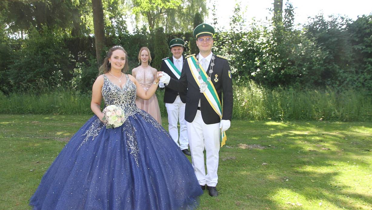 Die junge Studentin (22) und der 23-jährige Berufskraftfahrer waren in Begleitung von 14 Hofdamen. Königin Anna-Lena in ihrem royalblauen Kleid war dabei ein Augenschmaus. Das Kleid war mit viel Glitzer und Tüll gearbeitet und hatte einen ausladenden Reif. Die Hofdamen trugen Kleider in den rosa, blau und silber. Zu der Begleitung des Königspaares gehörte auch das Adjutantenpaar Jonas Hüser und Sahra Schäfer. Dem großen Festumzug folgte am Sonntagabend noch das Vogelschießen