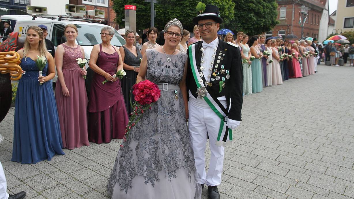 Büren. Auch das Königspaar der Bürener Bürgerschützen musste drei Jahre warten, um endlich wieder richtig Schützenfest feiern zu können. Langeweile oder gar Frust geschoben hatten Klaus und Corinna Stork aber nicht. Im Gegenteil. „Wir haben jede Gelegenheit zum Feiern genutzt“, sagte Klaus Stork. Und das nicht im kleinen Kreis, sondern oft mit der ganzen Kapelle. Da Schützenfeste nicht stattfinden durften, wurde eben im Garten gefeiert. Mal mit dem Hofstaat, mal mit einem Kompaniefest, mal mit dem Vorstand.