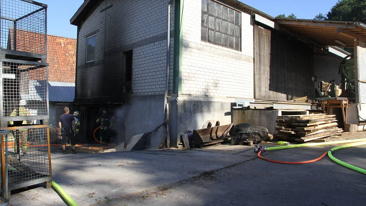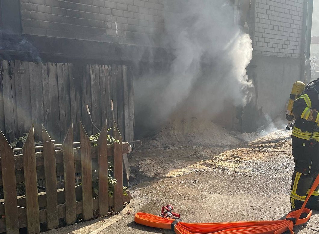 Büren-Ringelstein (sb/msc). Einsatz für die Kräfte der Feuerwehr Büren am Freitagnachmittag. Bei einem holzverarbeitenden Betrieb war es im Bereich des Spänebunkers zu einem Feuer gekommen, welches sich auch auf den Werkstattbereich ausgedehnt hatte.