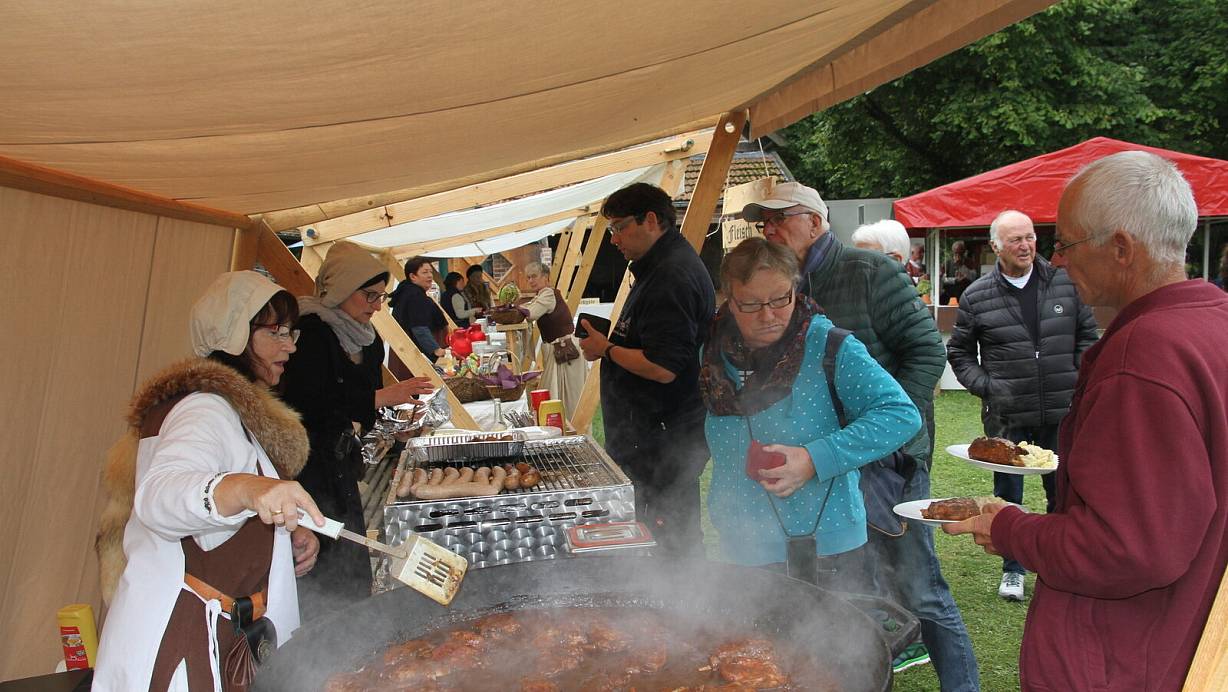 Erika Wolff und Bettina Bolt-Beach von Cohors Burana beim Verkauf von Haxen. | © Johannes Büttner