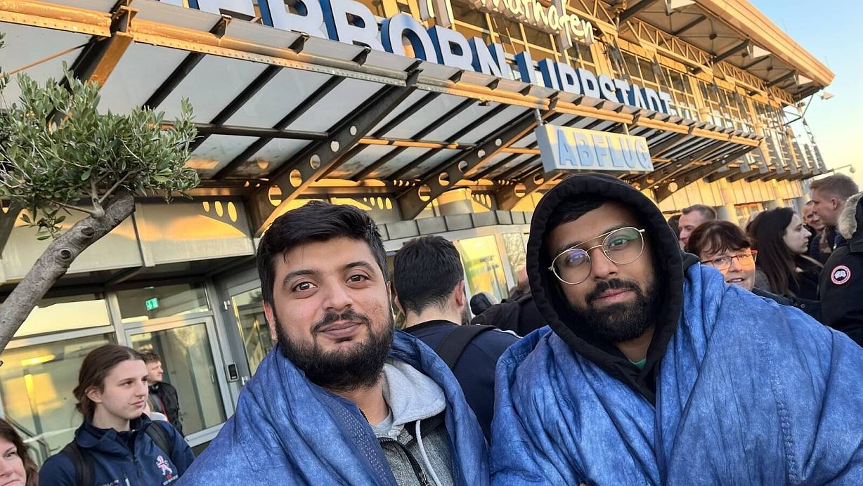 Daniel Din (l.) und Shay Karish wollten eigentlich zurück in ihre Heimststadt London, doch sie mussten nach der Bombendrohung im Flieger eine Nacht und einen Tag im Paderborner Land ausharren. | © Jens Reddeker