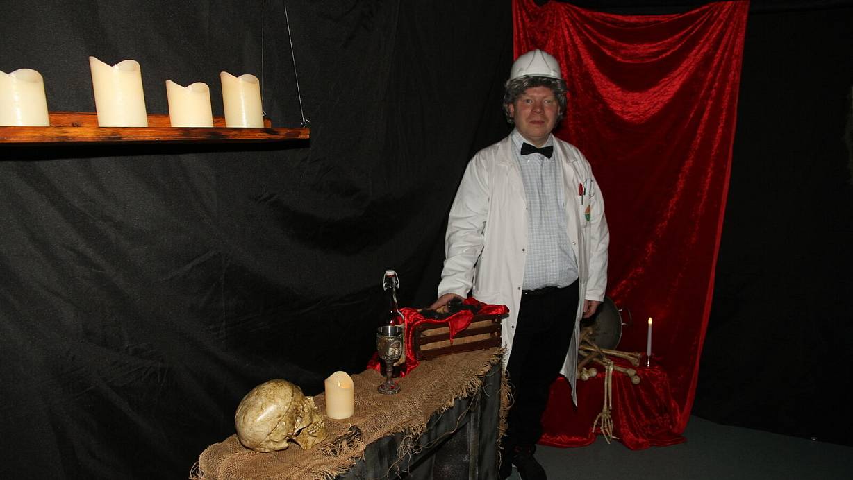 Mittels einer Zeitmaschine nahm Christian Polkläser als Professor Dr. Mike Splisher die Besucher mit auf ein einstündiges interaktives Abenteuer. Dabei trafen sie auf zahlreiche Gestalten des Mittelalters. In den eigens eingerichteten dunklen Schauräumen wurde erinnert an die Macht der Kirche, Pest, Leid und das Elend in dieser Zeit.