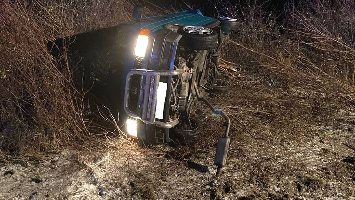 Der Transporter schleuderte laut Polizei durch den starken Aufprall von der Fahrbahn, kippte auf einem Grünstreifen auf die Beifahrerseite und blieb liegen. Der Fahrer (29) und sein Beifahrer (19) wurden dabei schwer verletzt.