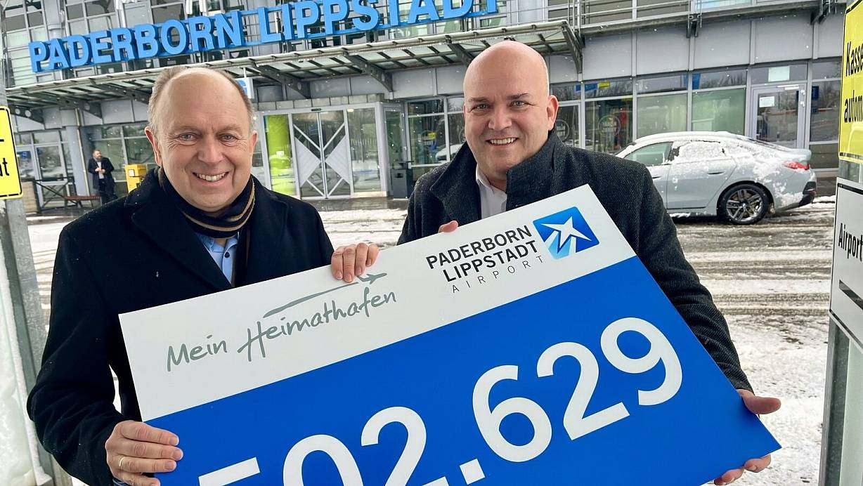 Aufsichtsratschef Christoph Rüther (l.) und Flughafenchef Roland Hüser sind stolz auf die Passagierzahl 2022 in Paderborn/Lippstadt. | © Jens Reddeker