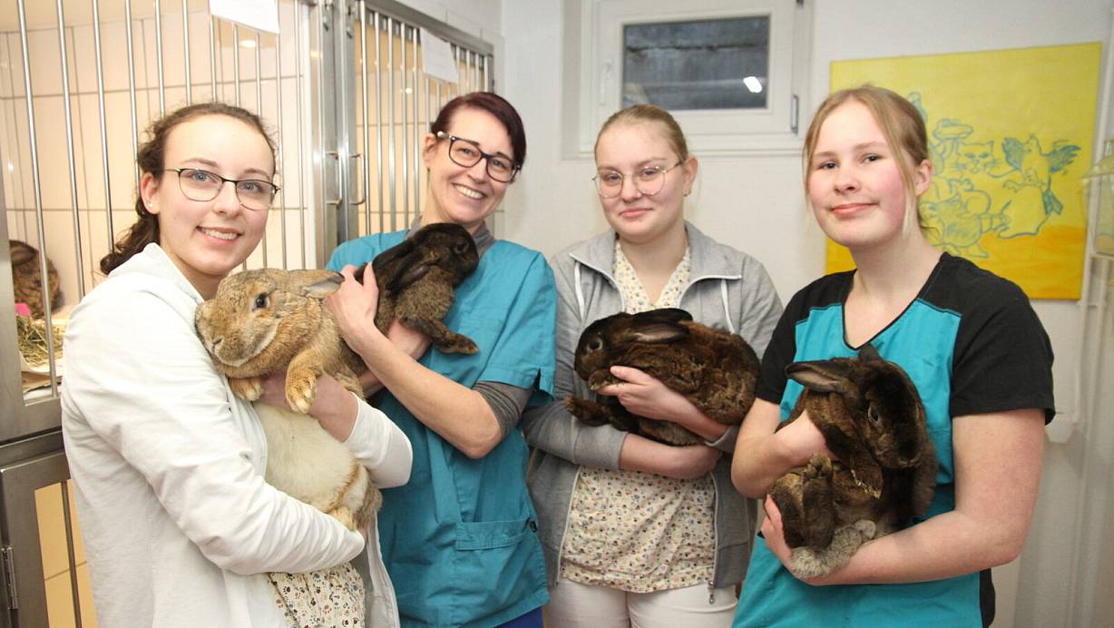 Es begann am Montagnachmittag als die ersten Anrufe bei der Stadt und in der Tierarztpraxis von Ute Altmann eingingen. „Auf einer Grünfläche an der Werkstraße laufen Hauskaninchen rum“, sagten besorgte Anrufer. „Es bestand offensichtlich eine große Gefahr, dass die Tiere von Autos überfahren werden“, berichtet Altmann. Die Feuerwehr wurde informiert und rückte zum Kaninchenfangen aus. Zwölf braune Rassekaninchen waren es schließlich, die von den Einsatzkräften vor dem Tod durch Verkehrsunfall gerettet wurden.