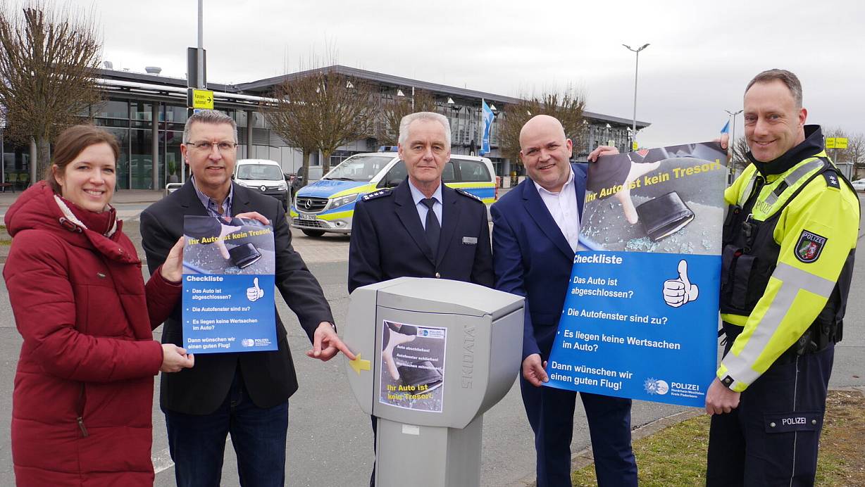 Um Autofahrer daran zu erinnern, ihr Auto abzuschließen und Wertgegenstände nicht zurückzulassen, hat die Kreispolizeibehörde Paderborn mit Unterstützung des Flughafens Paderborn/Lippstadt entsprechende Plakate und Aufkleber entworfen. Diese werden gut sichtbar im Innen- und Außenbereich des Flughafens angebracht, unter anderem an Ticketautomaten und Betonpfeilern auf den Parkflächen. "Ihr Auto ist kein Tresor! Schaffen Sie durch ihr Verhalten keine Anreize für Straftäter, um in Ihr Fahrzeug einzubrechen", warnt die Kreispolizeibehörde.