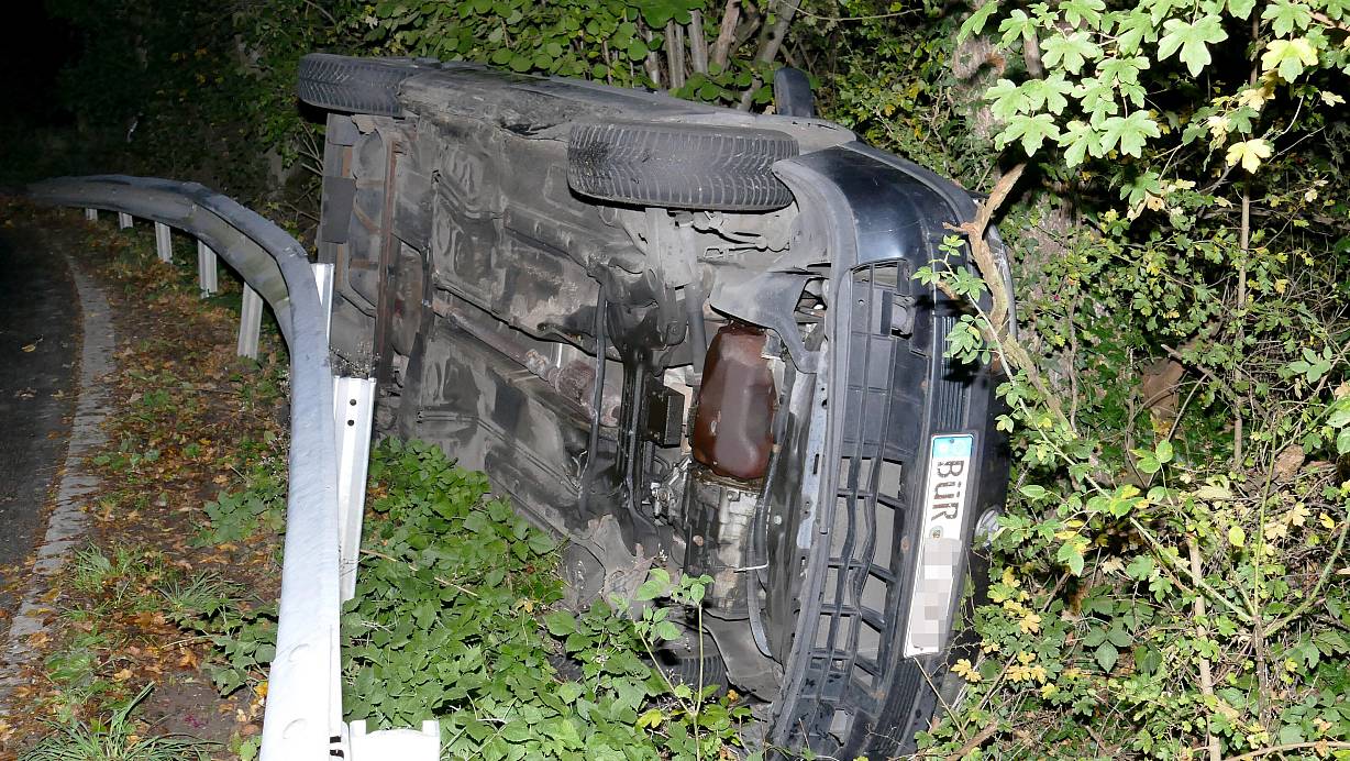 Junger Fahrer fliegt bei Büren mit seinem Auto über die Schutzplanke