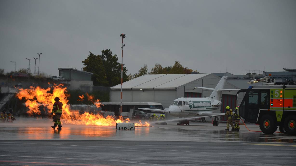 Teil des Übungsszenarios war der Absturz eines Kunstflugzeuges auf dem Vorfeld des Paderborner Flughafens. | © Flughafen Paderborn/Lippstadt