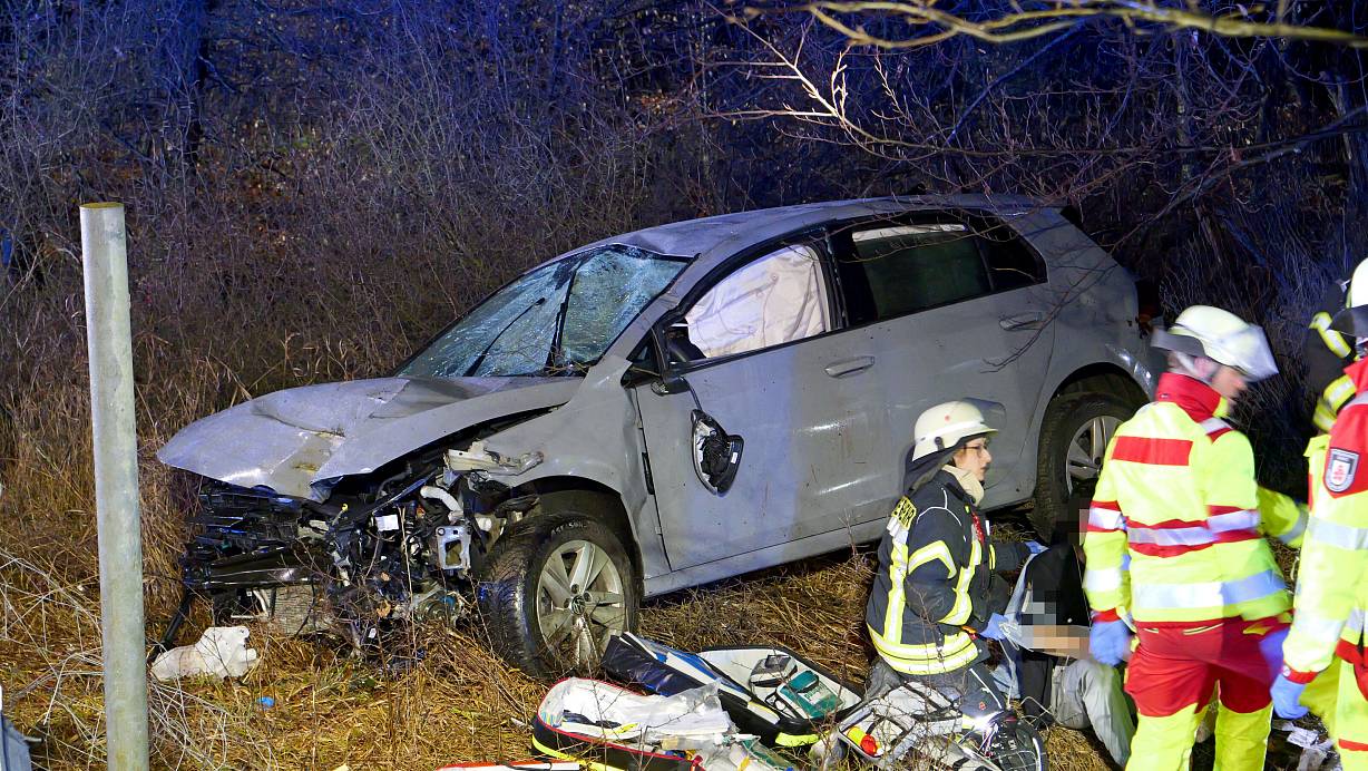 Bei einem Unfall auf dem Autobahnzubringer (L776) in Büren kam am frühen Montagmorgen ein mit zwei Personen besetzter VW Golf nach rechts von der Fahrbahn ab, prallte gegen zwei Bäume und blieb unterhalb der Straße liegen. | © Ralph Meyer